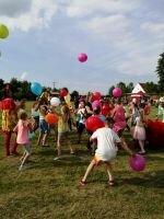 W tym roku, po raz pierwszy, obchodziliśmy Gminny Dzień Dziecka. Przy ogromnym zaangażowaniu sołtysów 17 wsi, wójta i pracowników urzędu gminy, strażaków, pracowników ZWiK, GOKiP, a także wielu ludzi dobrej woli, przygotowano szereg atrakcji m.in. do dyspozycji dzieci były cztery dmuchane zjeżdżalnie, basenik z kulkami dla najmłodszych foto-budka czy też malowanie twarzy i brokatowe tatuaże. Podczas festynu podziwialiśmy także spektakl w plenerze pt. „Balonowe podróże” .Podczas spektaklu dzieci wraz z aktorami wyruszały w dalekie podróże z balonami, tańczyły, śpiewały, a także puszczały ogromne bańki mydlane. Dla podniebienia naszych milusińskich przygotowano popcorn, watę cukrową, napoje, lody oraz frytki i hot-dogi. Rada Rodziców działająca przy naszej szkole podstawowej przygotowała do sprzedaży pyszne domowe ciasta, kawę i herbatę dla dorosłych uczestników naszej imprezy.