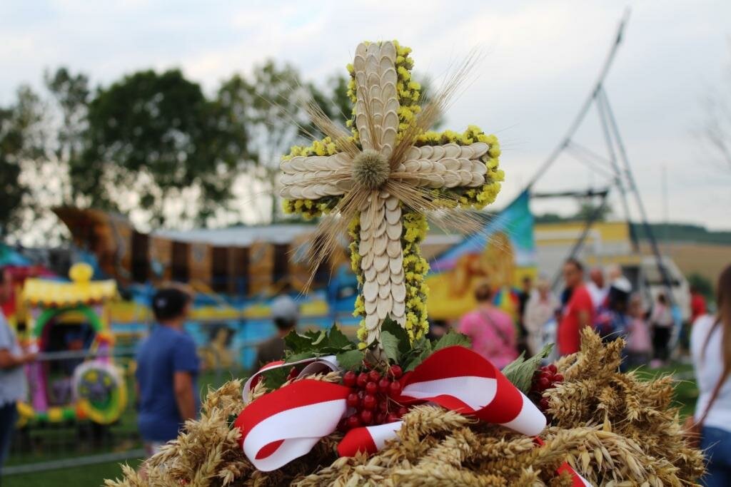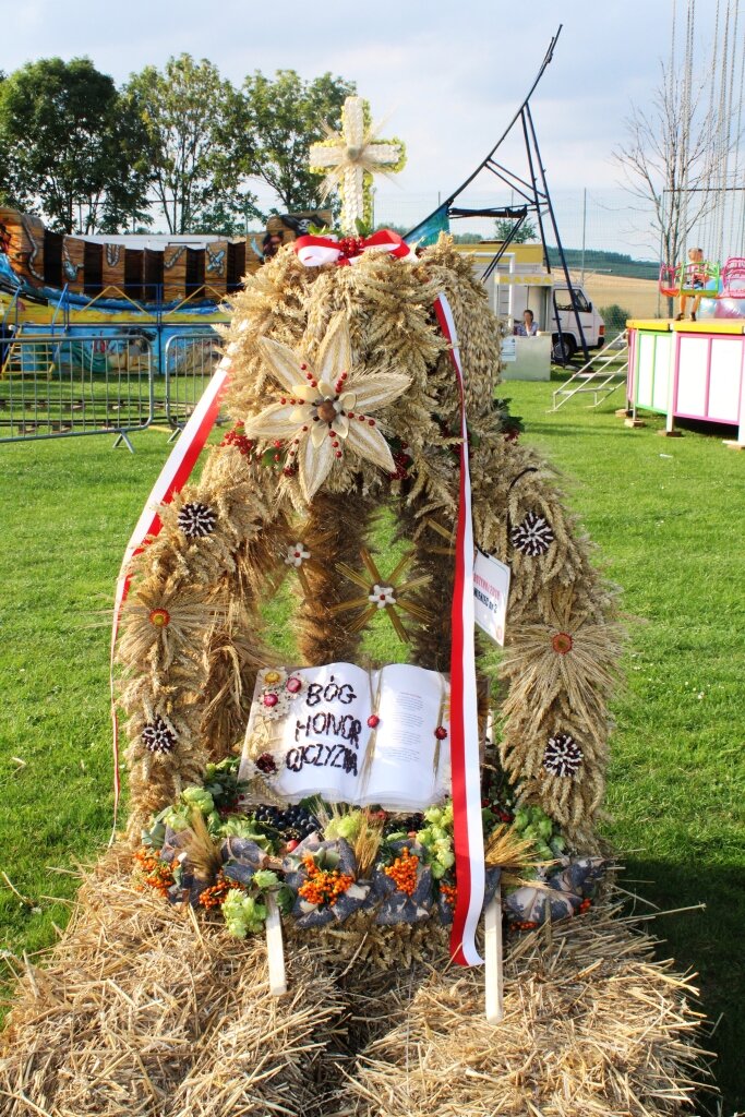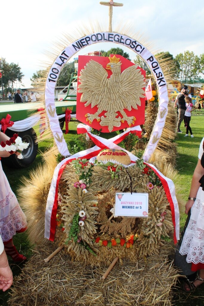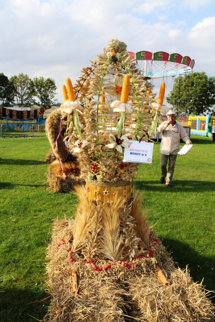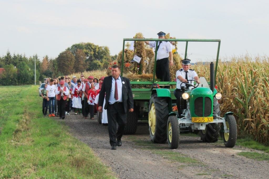 Po Mszy Świętej barwny korowód delegacji poszczególnych sołectw z wieńcami plecionymi ze świeżo skoszonych zbóż podążył na boisko sportowe, gdzie włodarz gminy – wójt Łukasz Białkowski - powitał wszystkich mieszkańców, podziękował rolnikom za ich pracę i wraz ze starostami - Jerzym i Czesławą Twarowskimi z Targowicy - obdzielił poświęconym podczas Mszy Świętej chlebem wszystkich uczestników imprezy. Ceremoniału dopełnił występ zespołu ludowego Ciepłowodzianki działającego przy ośrodku kultury, który tradycyjnie ośpiewał wieńce dożynkowe.