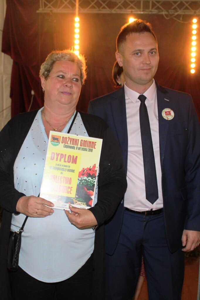 Uczestnicy imprezy głosowali na najpiękniejszy wieniec dożynkowy, a starostowie dożynek wspólnie z sekretarzem gminy - Robertem Sarną oraz radną Edytą Piętą oceniali zgłoszone do konkursów chleby dożynkowe, płody rolne, wiersze i przyśpiewki. Nagroda za najładniejszy wieniec trafiła do sołectwa Jakubów, najpiękniejszy chleb dożynkowy upiekła pani Helena Malinowska z Ciepłowód, za najbardziej wyjątkowy płód rolny uznano arbuza wyhodowanego przez panią Ewę Lepkę z Karczowic, najładniejszą przyśpiewkę dożynkową napisała pani Halina Gulej z Ciepłowód, a najładniejszą kukłę dożynkową przygotowało sołectwo Czesławice.