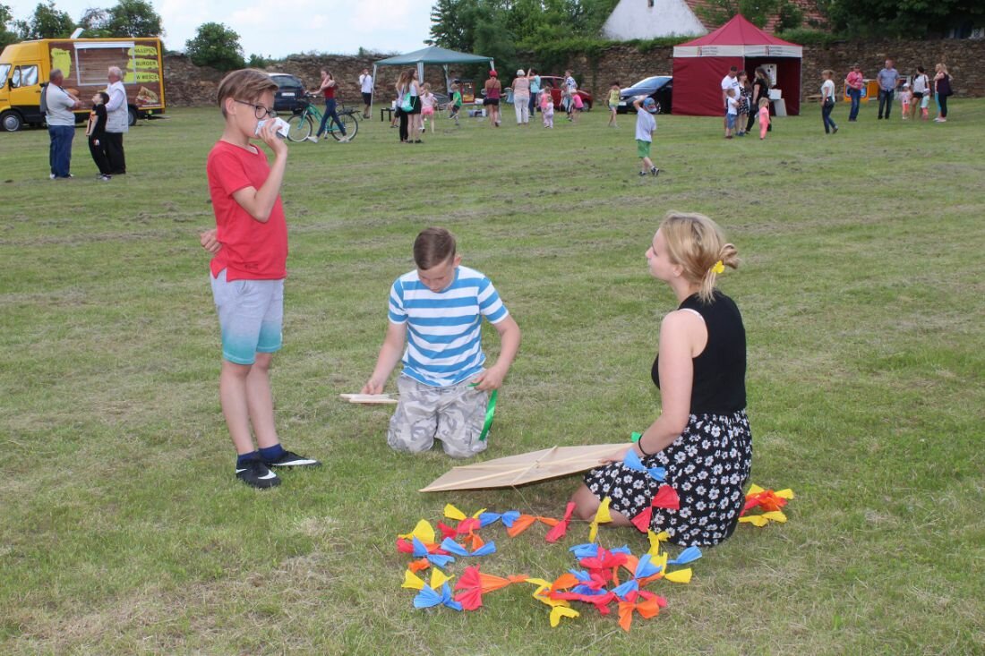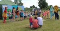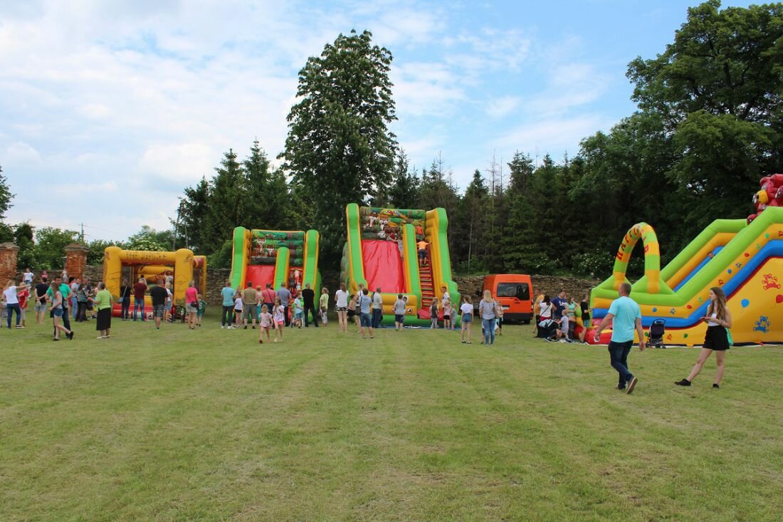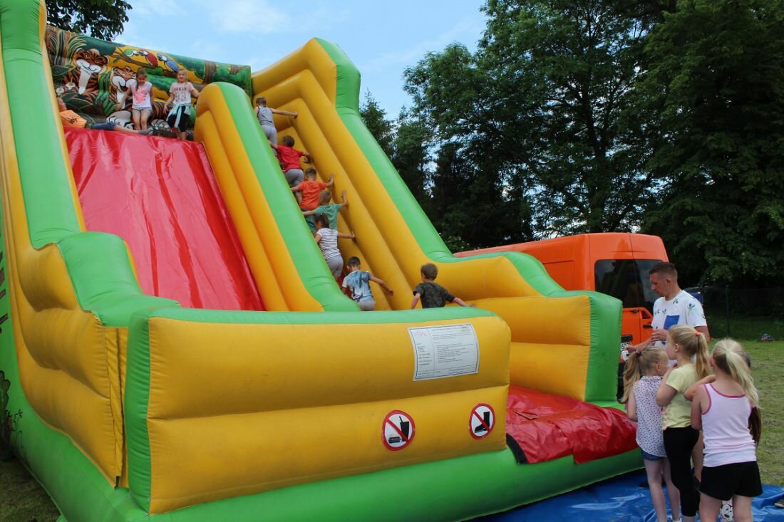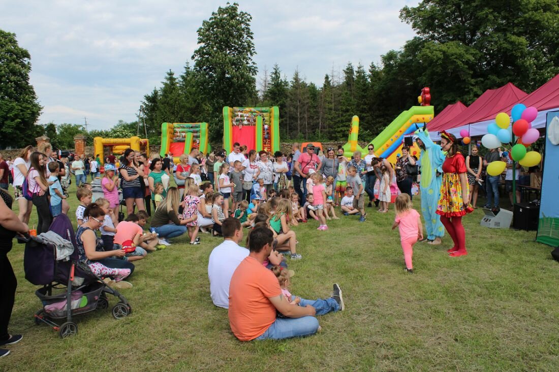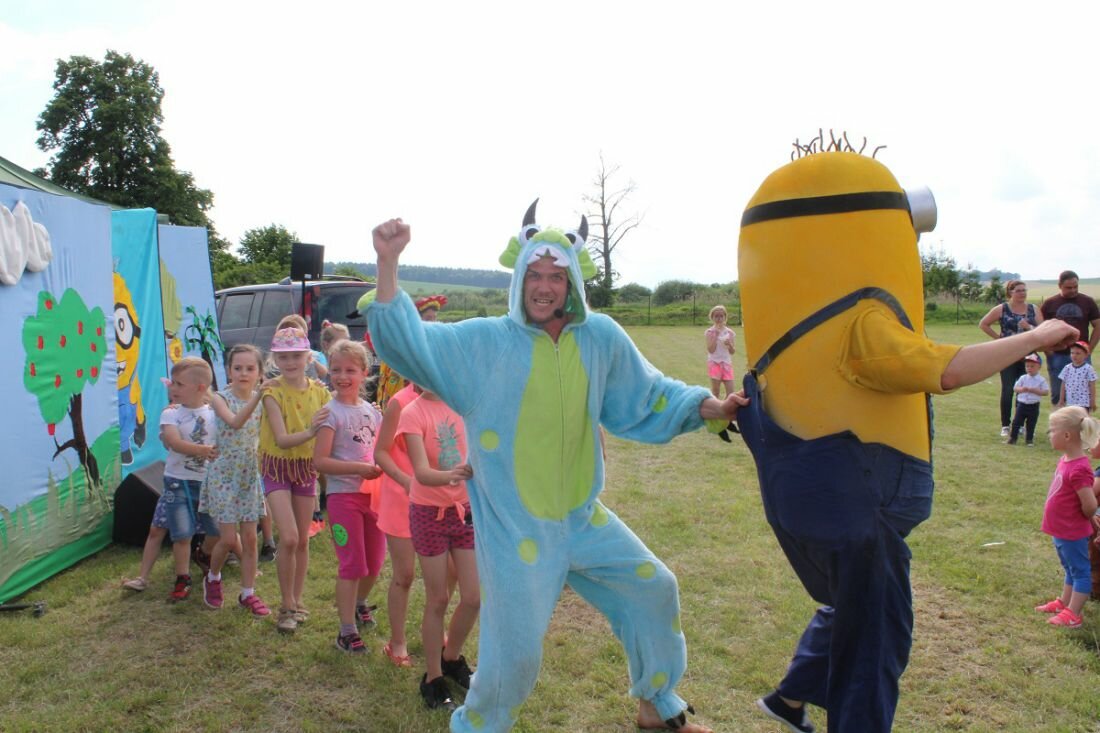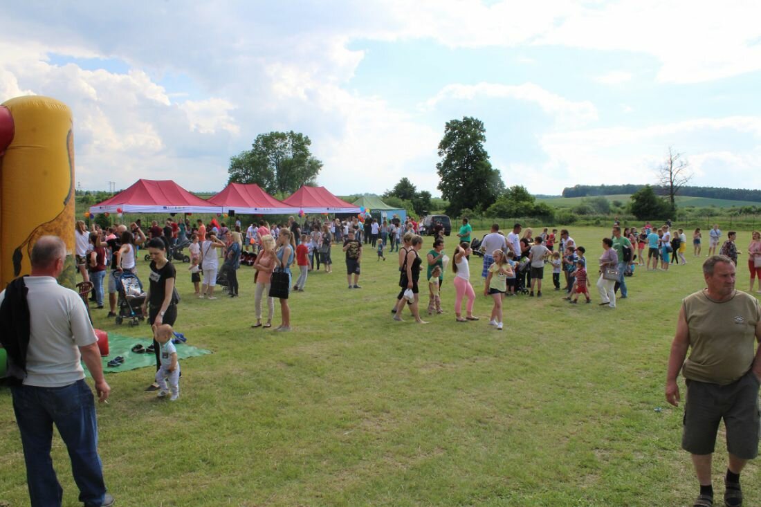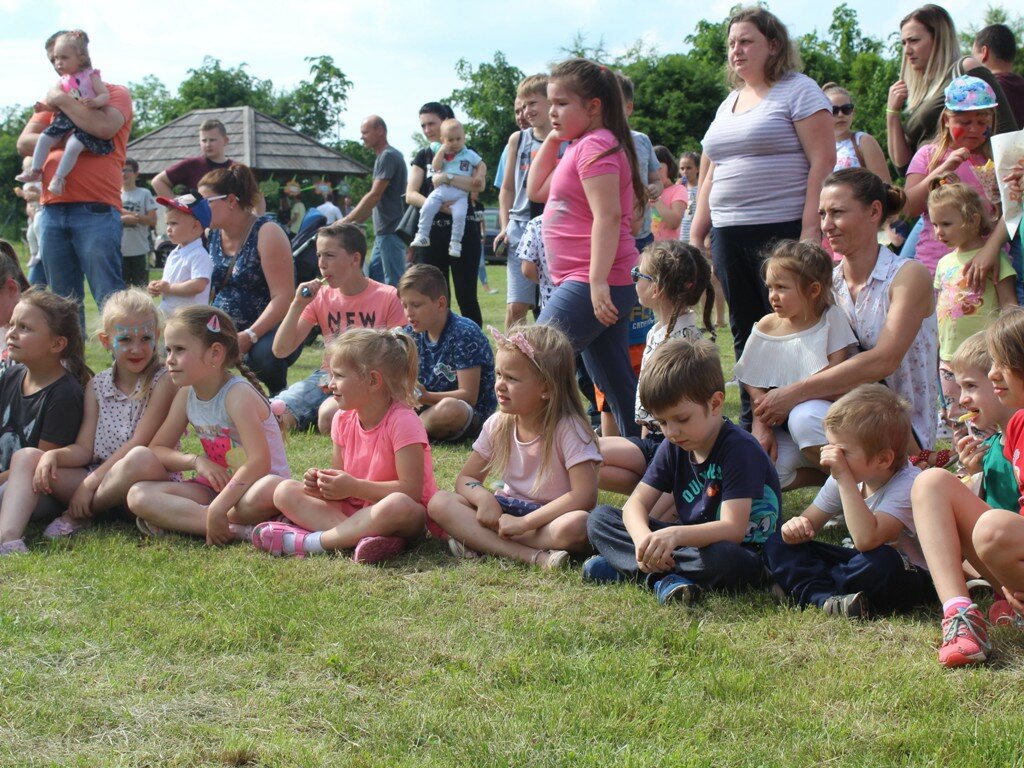W tym roku, po raz pierwszy, obchodziliśmy Gminny Dzień Dziecka. Przy ogromnym zaangażowaniu sołtysów 17 wsi, wójta i pracowników urzędu gminy, strażaków, pracowników ZWiK, GOKiP, a także wielu ludzi dobrej woli, przygotowano szereg atrakcji m.in. do dyspozycji dzieci były cztery dmuchane zjeżdżalnie, basenik z kulkami dla najmłodszych foto-budka czy też malowanie twarzy i brokatowe tatuaże. Podczas festynu podziwialiśmy także spektakl w plenerze pt. „Balonowe podróże” .Podczas spektaklu dzieci wraz z aktorami wyruszały w dalekie podróże z balonami, tańczyły, śpiewały, a także puszczały ogromne bańki mydlane. Dla podniebienia naszych milusińskich przygotowano popcorn, watę cukrową, napoje, lody oraz frytki i hot-dogi. Rada Rodziców działająca przy naszej szkole podstawowej przygotowała do sprzedaży pyszne domowe ciasta, kawę i herbatę dla dorosłych uczestników naszej imprezy.
