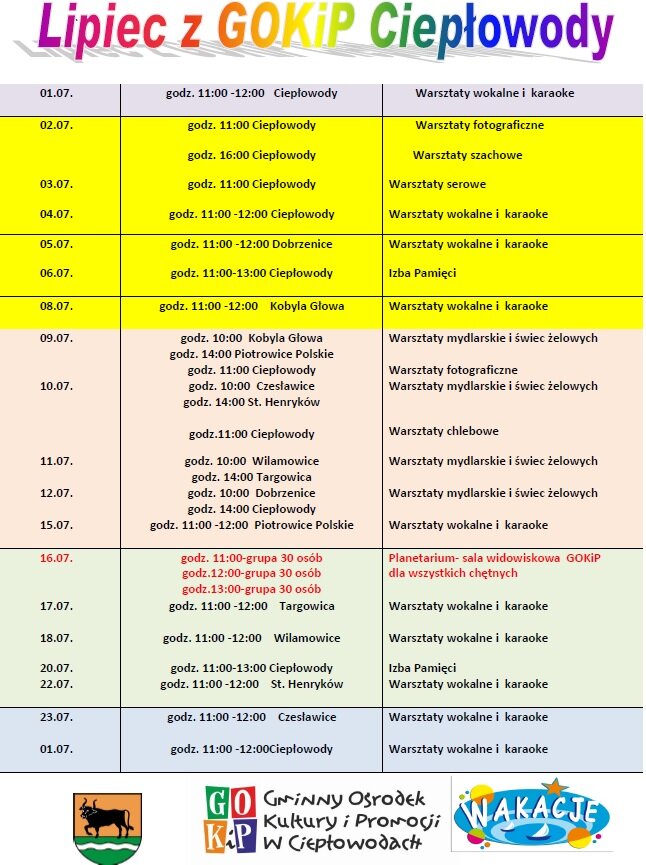 GOKiP ZAPRASZA NA WARSZTATY WAKACYJNE W LIPCU 2019 Kultura » Aktualności » GOKiP ZAPRASZA NA WARSZTATY WAKACYJNE W LIPCU 2019 2019-07-05