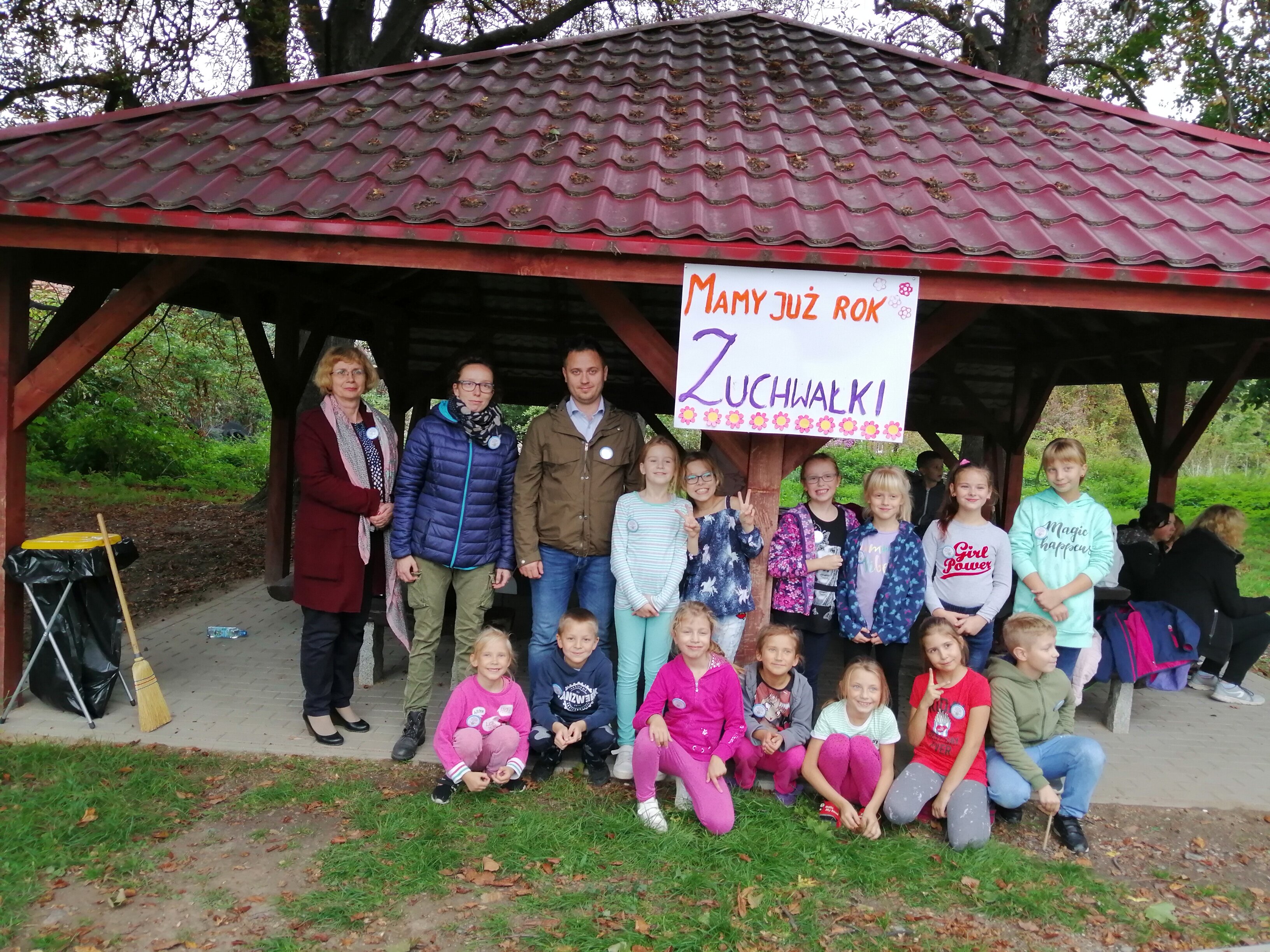 27 września obchodziliśmy pierwszą rocznicę założenia zastępu zuchowego ZUCHWAŁKI .Imprezę przygotował GOKIP przy współudziale radnej Gminy Ciepłowody Marzeny Prygoń-opiekuna zastępu oraz p.Anny Olejnik-Rydz. W naszym spotkaniu uczestniczył Wójt Gminy Ciepłowody-pan Łukasz Białkowski oraz p. Beata Lupa-dyrektor ZSP w Ciepłowodach.Zabawę rozpoczęliśmy od wręczenia pamiątkowego buttonu , a następnie zuchy stanęły w kręgu przy ognisku i przypominając sobie Prawo Zucha spełniły obietnicę zuchową. Kolejnym etapem spotkania były zabawy z animatorkami w całości związane ze Świętem Pieczonego Ziemniaka . W międzyczasie upiekliśmy kiełbaski, przygotowana była kawa dla starszych i herbatka dla dzieci. Nie obyło się także bez urodzinowego tortu-świeczkę zdmuchnęły wszystkie Zuchy.